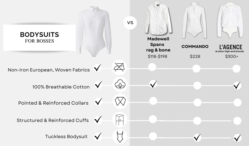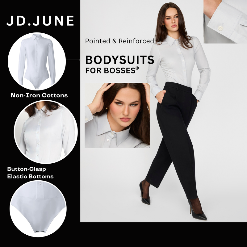 With slimming darts down the waist, this Business Bodysuit is tailored and never untucked. Our Pinpoint Oxford woven fabric allows a buttery-soft drape and adds the iconic, dotted-matte finish to any polished outfit. With formal cuffs and collars and an illumined, blue hue, this Bodysuit for Bosses is perfect for staying effortlessly powerful.